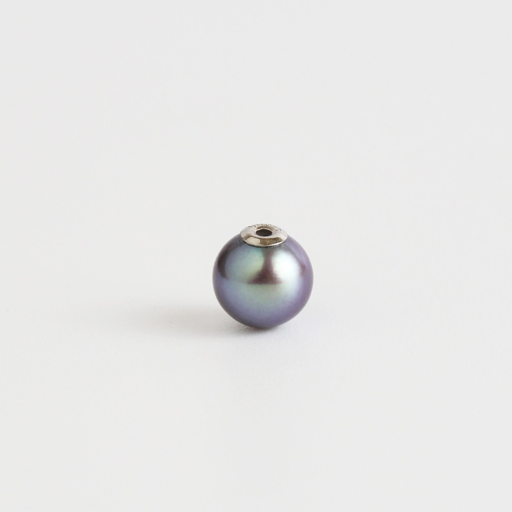 グレイッシュブラックのシックな光沢感が魅力的なあこや真珠のピアスキャッチ。ポスト芯が存在するピアスに脱着可能です。なびいた髪の隙間から、髪を耳にかけた時や束ねた時、正面のみならず横顔から後方までの美意識を補助します。