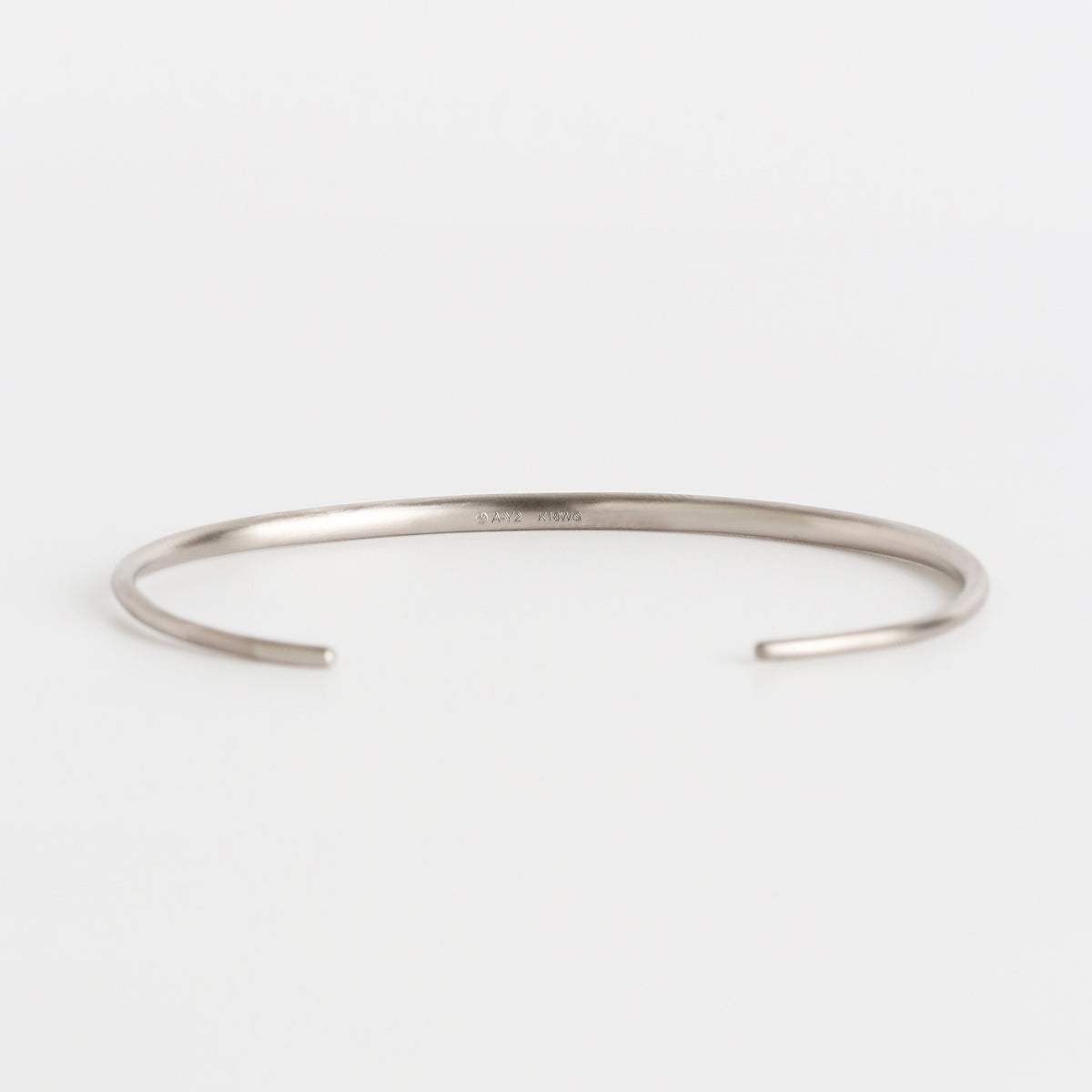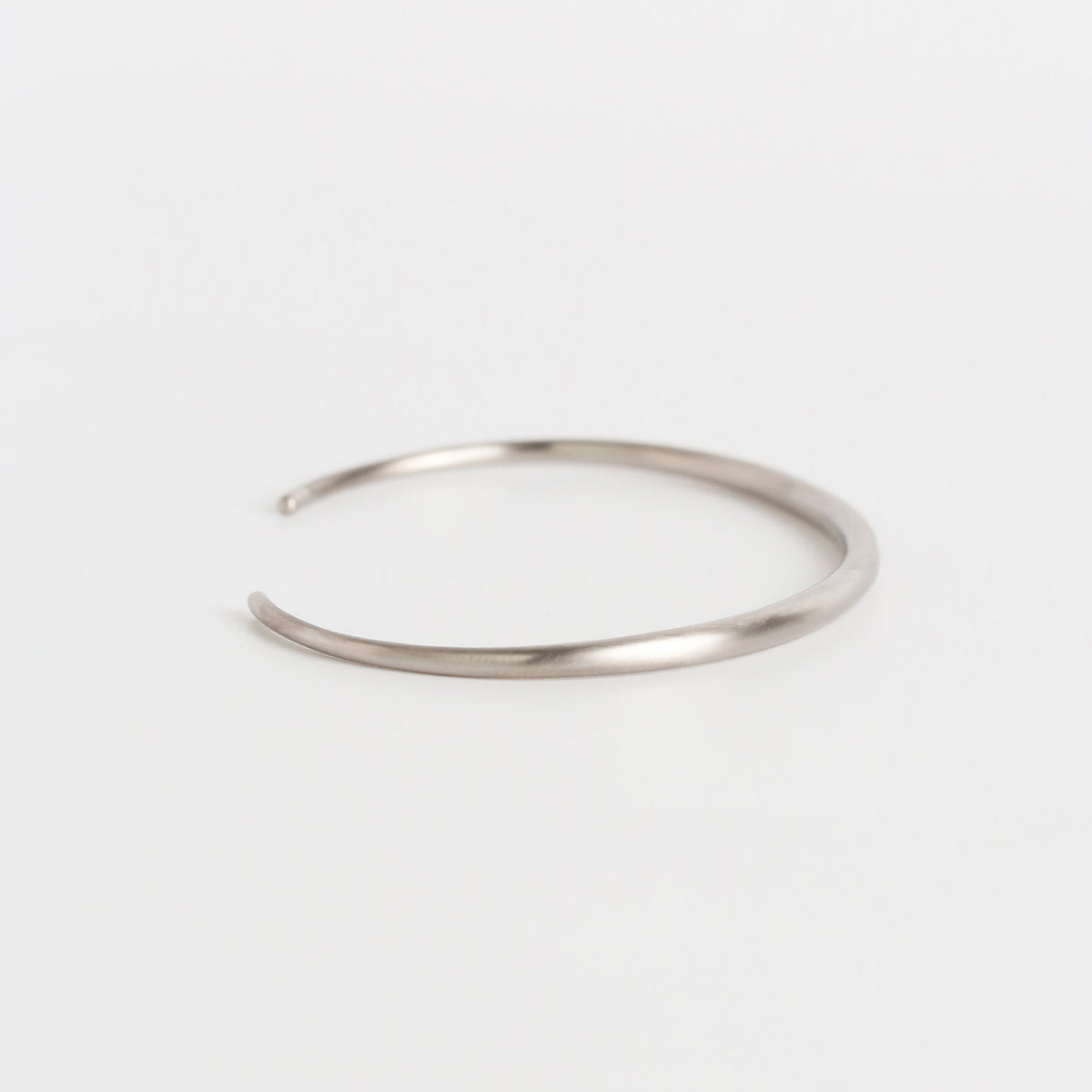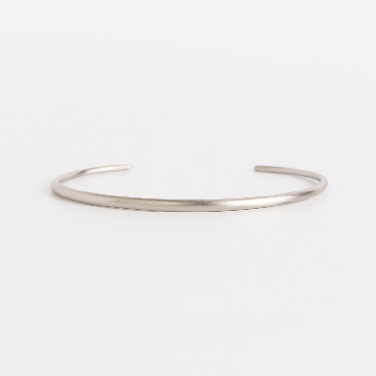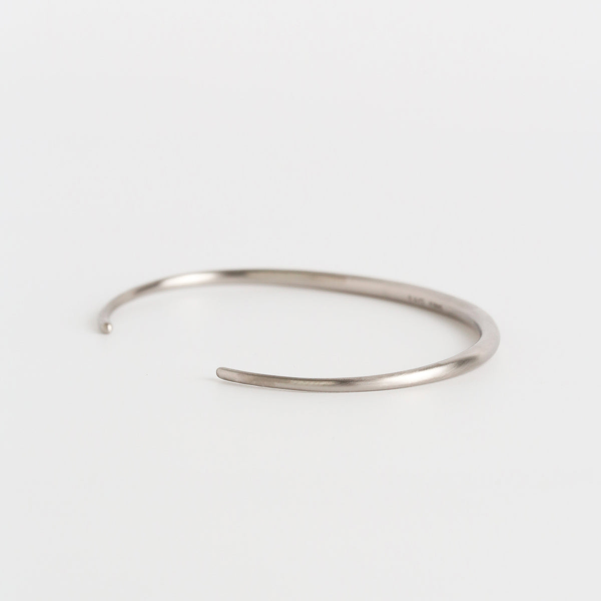 艶消し仕上げが、洗練されたシンプルさの中に独特の温かみと風合いを与え、長く使い込むことでさらに魅力的な表情へと昇華されます。腕時計や他のブレスレットとの重ね付けも楽しめ、どんなシーンでも上質感を引き立てます。シンプルでありながら、心に残る一生もののバングルです。