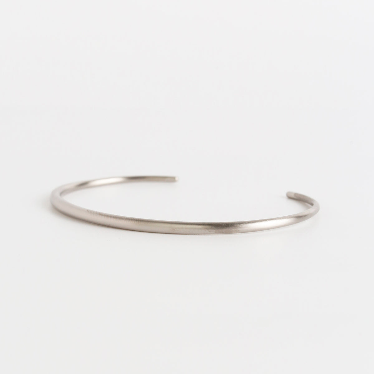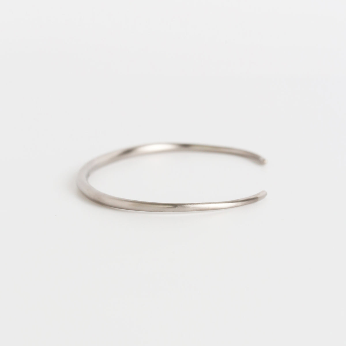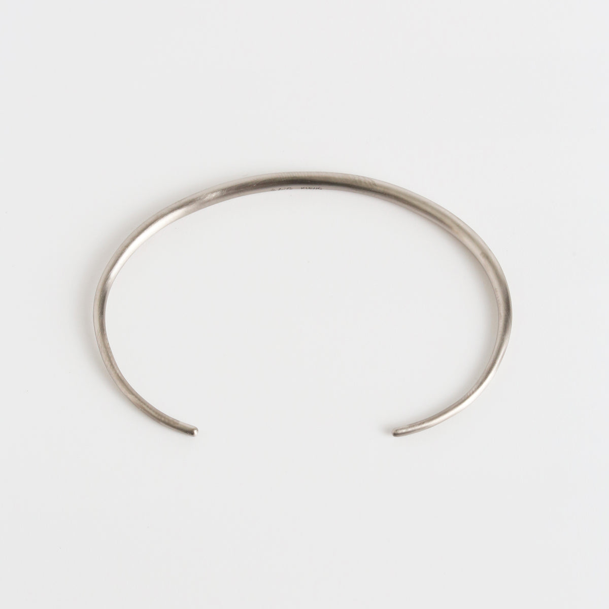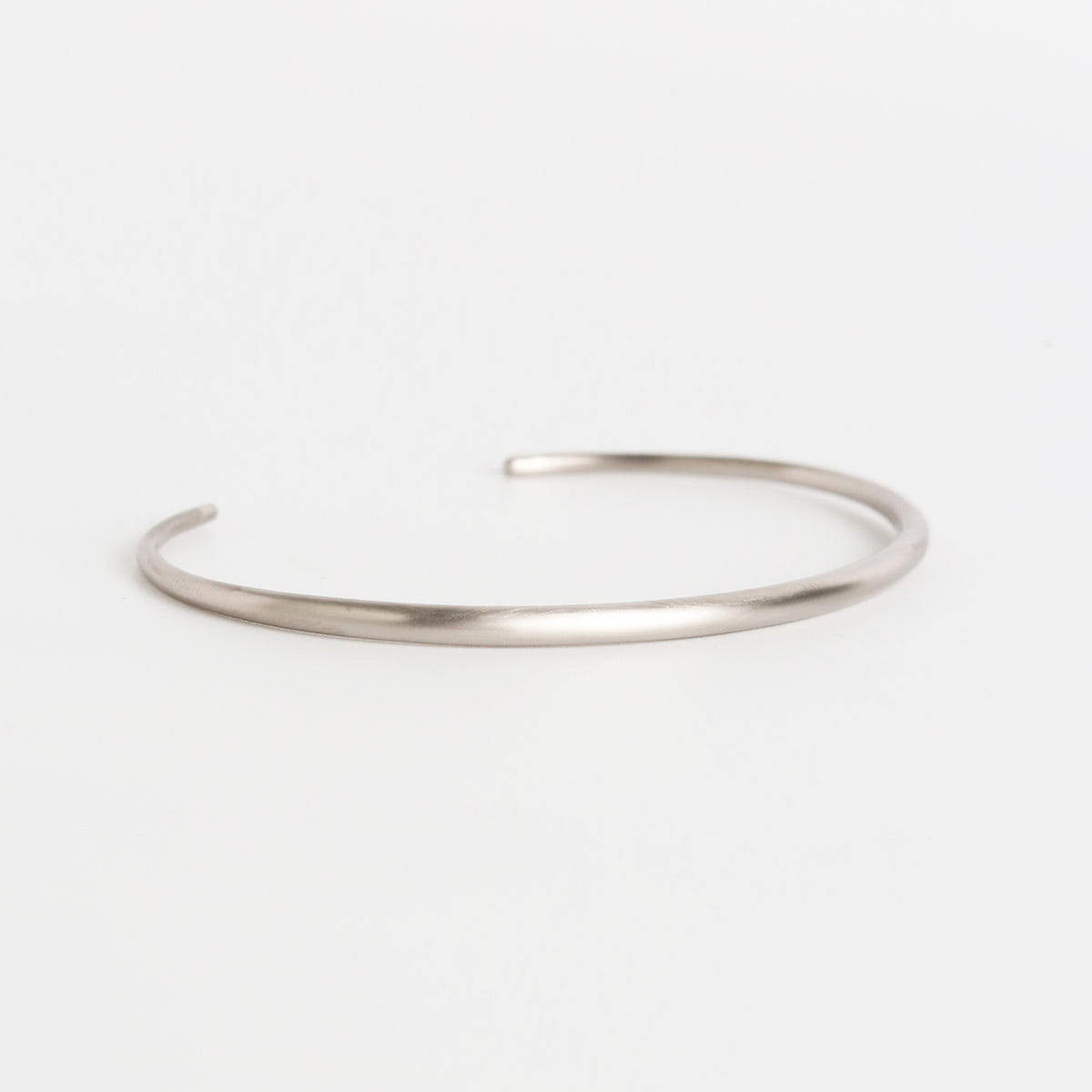 艶消し仕上げが、洗練されたシンプルさの中に独特の温かみと風合いを与え、長く使い込むことでさらに魅力的な表情へと昇華されます。腕時計や他のブレスレットとの重ね付けも楽しめ、どんなシーンでも上質感を引き立てます。シンプルでありながら、心に残る一生もののバングルです。