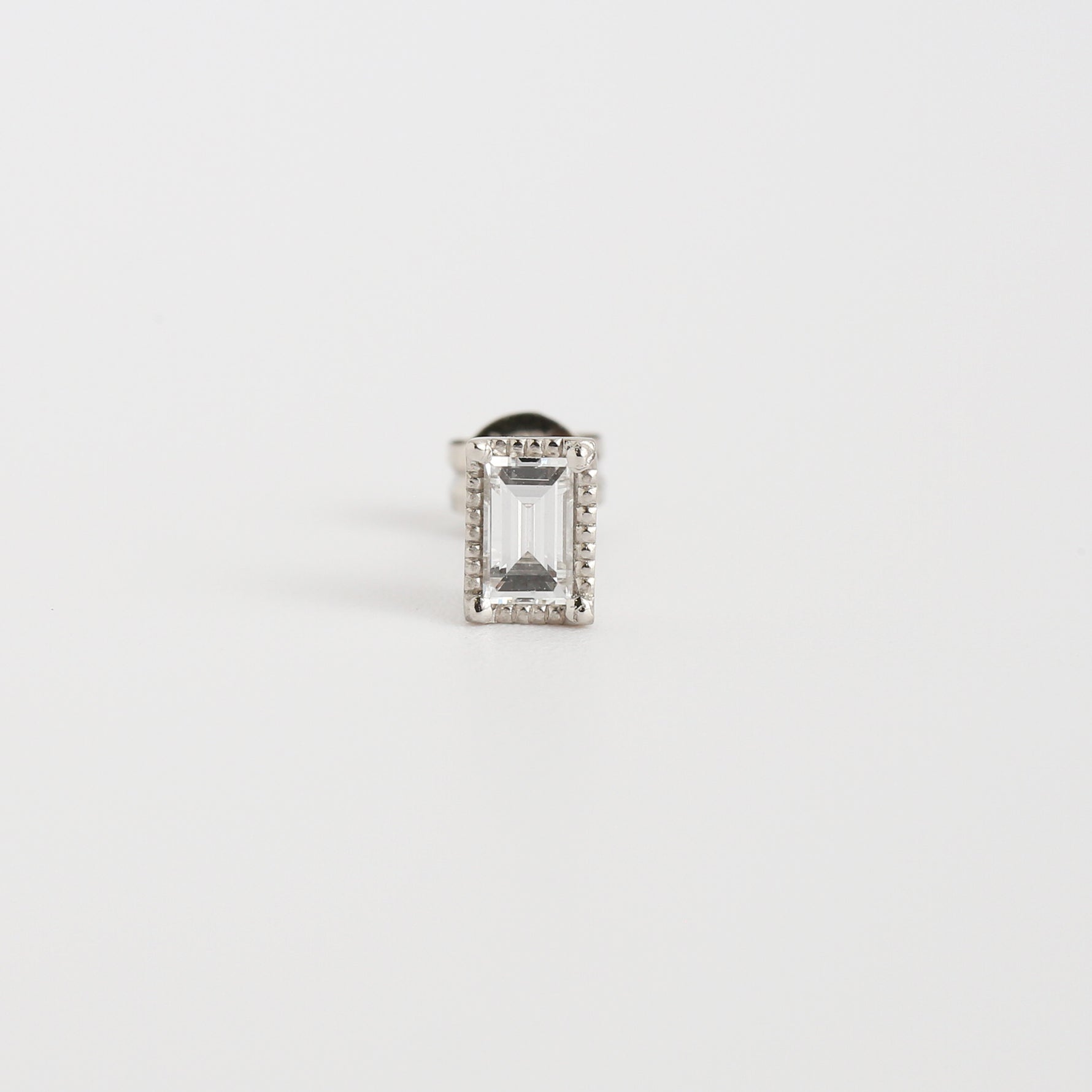澄んだ透明度の高いバゲットカットのダイヤモンドをセレクトしたスタッドピアス。ダイヤモンドを取り囲むPt900の地金に手仕事で一刻一刻と、細やかなミルグレインを施した優美なデザイン。タイムレスかつ洗練されたシルエットと個性豊かなダイヤモンドの輝きで、身に着ける人の耳元を華やかに彩ります。