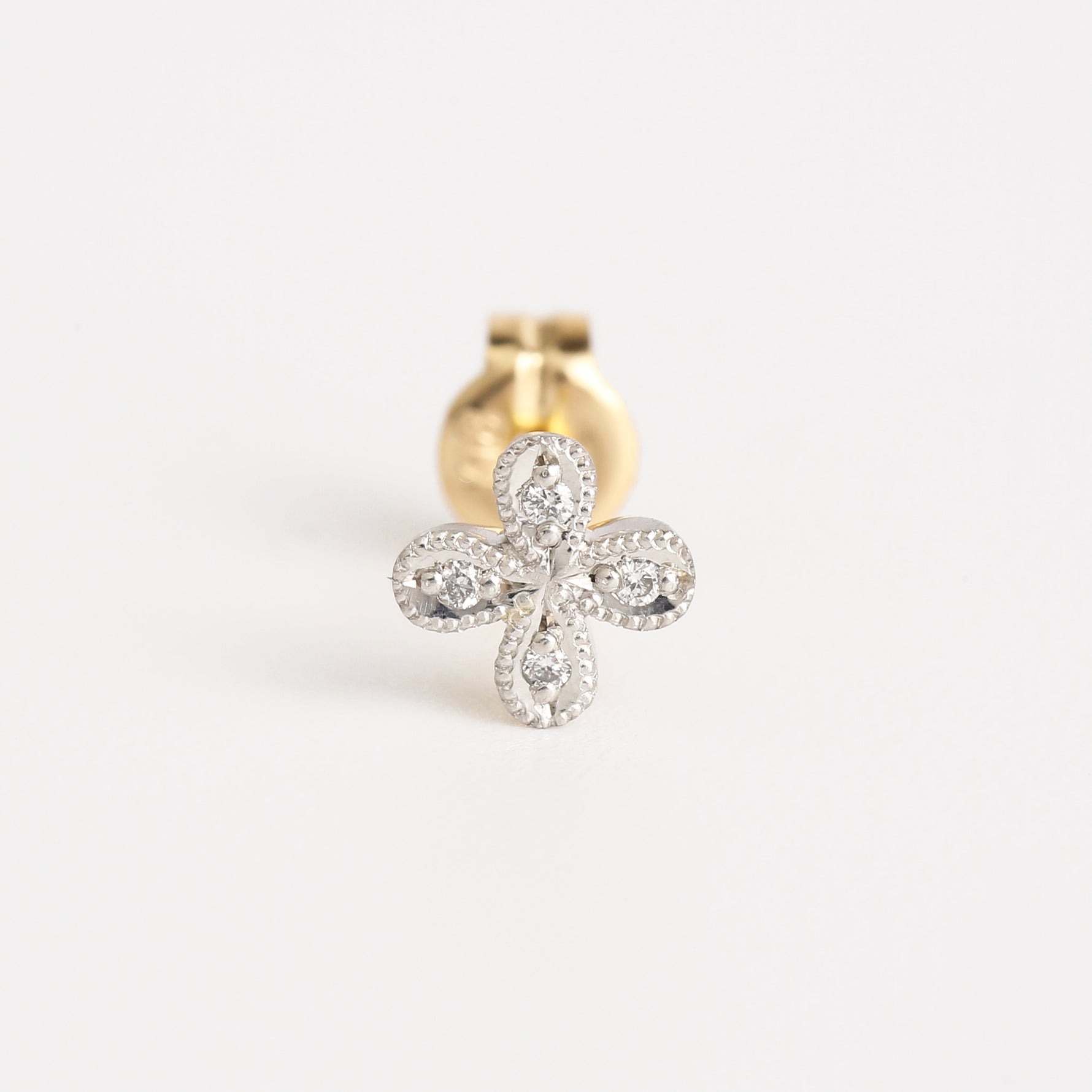 穏やかなそよ風に揺らめく小さな花のスタッドピアス。ミニマムに表現した4枚の花びら一つ一つに繊細な彫金技法で丁寧にミルグレインを施し、豊かな材質感をより昇華させています。