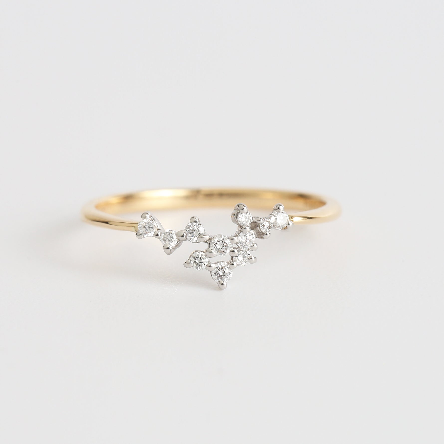 プラチナとK18ゴールドの上質な2種類の材質を組み合わせたコンビカラー仕様。コントラストを効かせた深みのある表情。リングアームはトップに向かってシェイプしており、繊細に連なるダイヤモンドの輝きと存在感をより印象的にさせます。