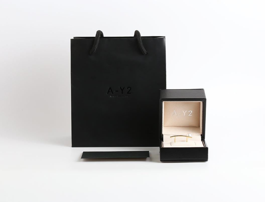 A-Y2オリジナルジュエリーボックスにお入れし、紙袋・お買い上げ証明書をお付けしてお届けします。