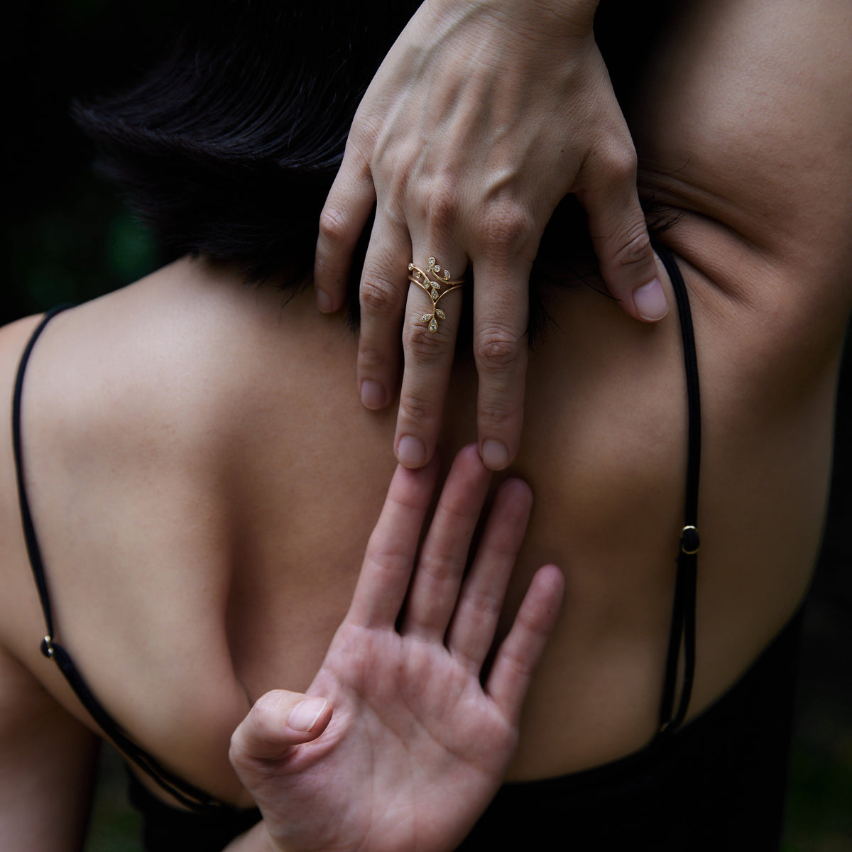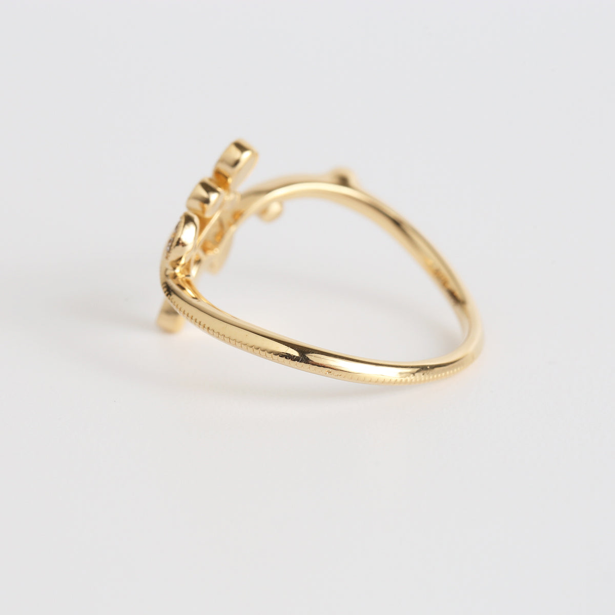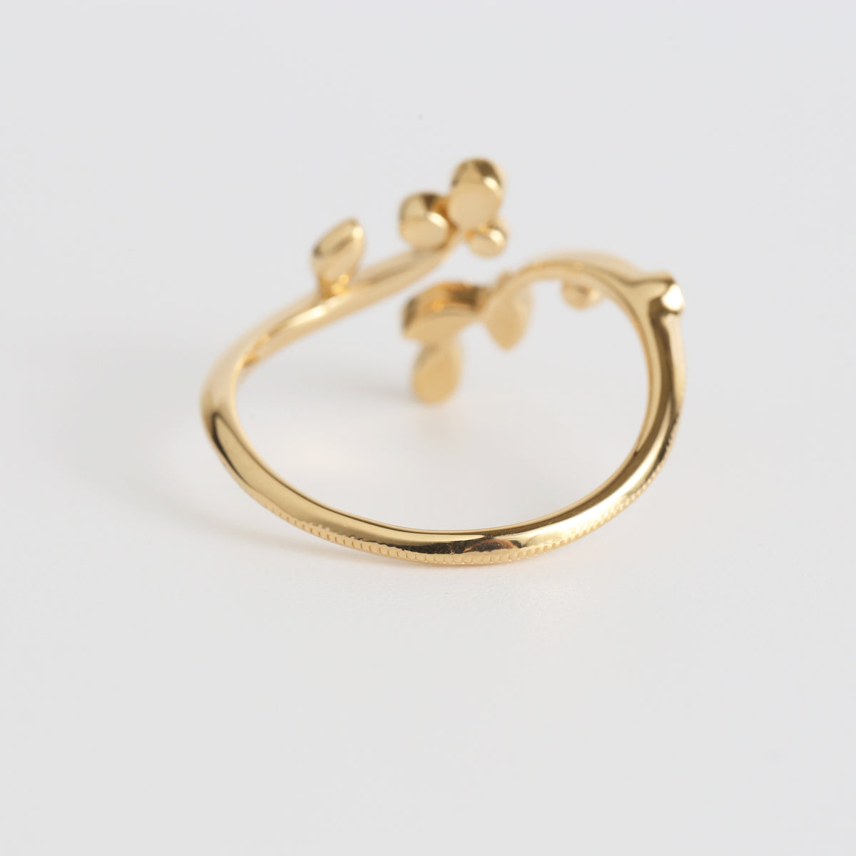 生命力が溢れる植物のリング。躍動的な植物の動きに呼応して小さなダイヤモンドたちが瑞々しく輝くデザイン。アームや葉の部分にミルグレインを細やかに施し、繊細さを表現しています。同シリーズのドレスアップリーフと組み合わせることでより昇華し、まるでひとつの大きな植物のように姿を変えます。